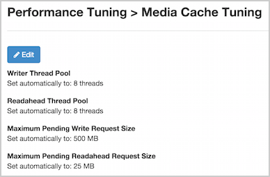 要改变这些设置,请点击Edit。若将设置保留为Set automatically,那么Wowza Streaming Engine 将按如下方式自己计算线程数量: