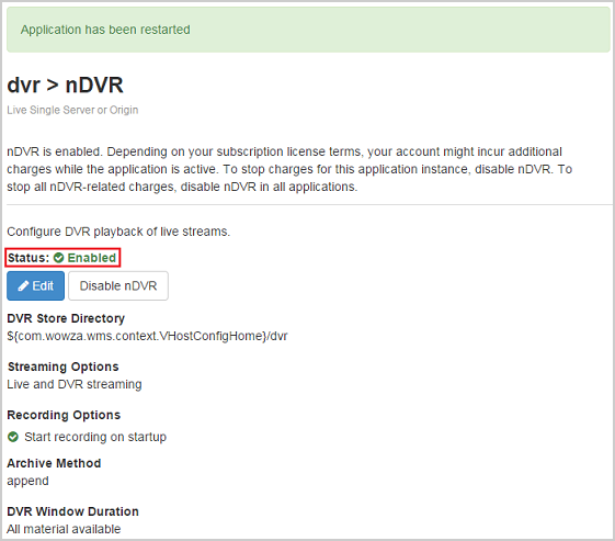 注意: 如果你在一个更复杂的源/边缘(origin/edge)架构下使用Wowza nDVR功能,那么你不要将这些属性设置在边缘服务器上。 请一定要仔细依据如何在源/边缘(origin/edge)架构下使用Wowza nDVR 功能的指导进行配置以避免错误。 -