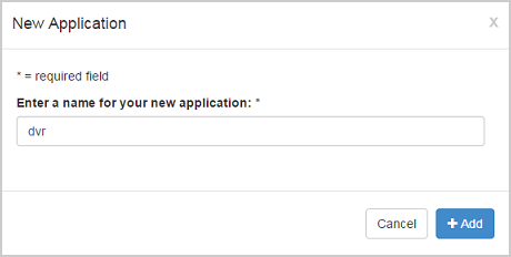 - 在New Application对话框中,输入一个应用名字dvr, 然后点击Add.