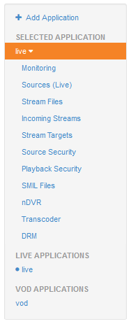 - 在Wowza Streaming Engine Manager管理界面中,点击页面顶部的Applications,然后再点击live。