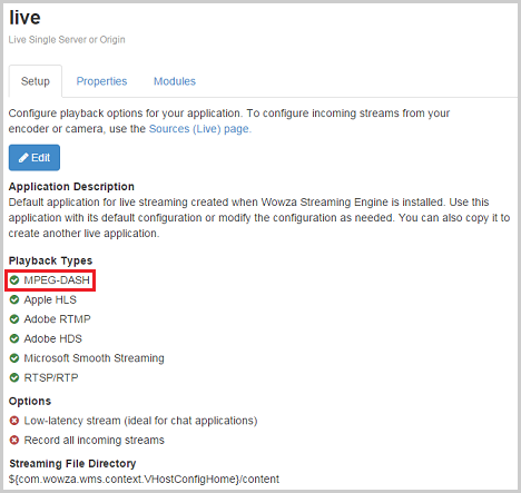 要播放你的WebM直播流,请使用最新版本的Chrome浏览器和Google Shaka播放器。更多细节,请阅读如何用Google Shaka播放器播放Wowza的MPEG-DASH音视频流?.