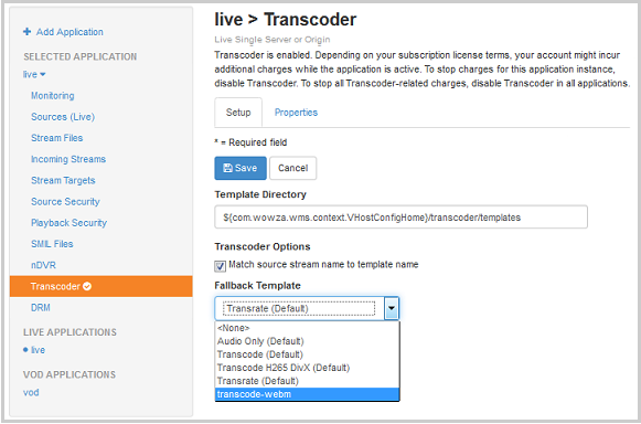 - 将transcode-webm.xml文件拷贝到Wowza Streaming Engine的[install-dir]/transcoder/templates文件夹下。